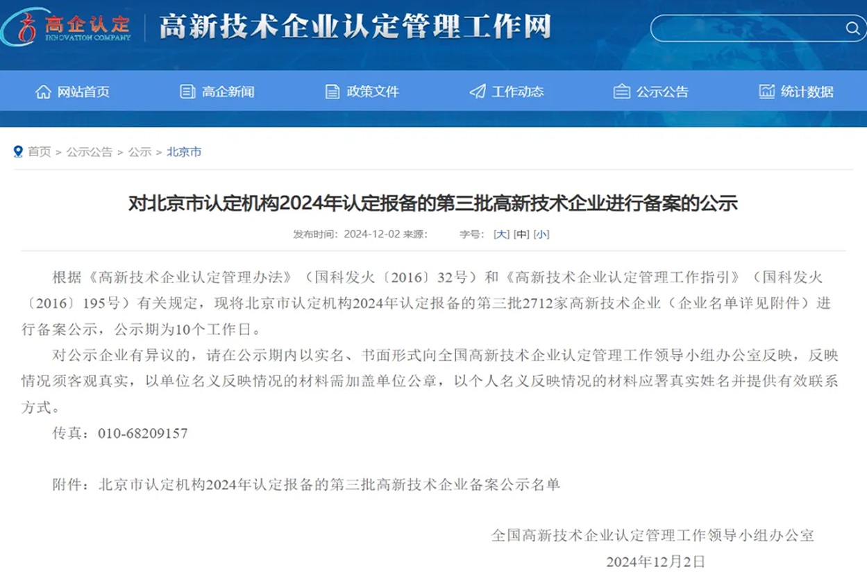喜报!玮航科技入选北京市2024年第三批国家高新技术企业认定名单