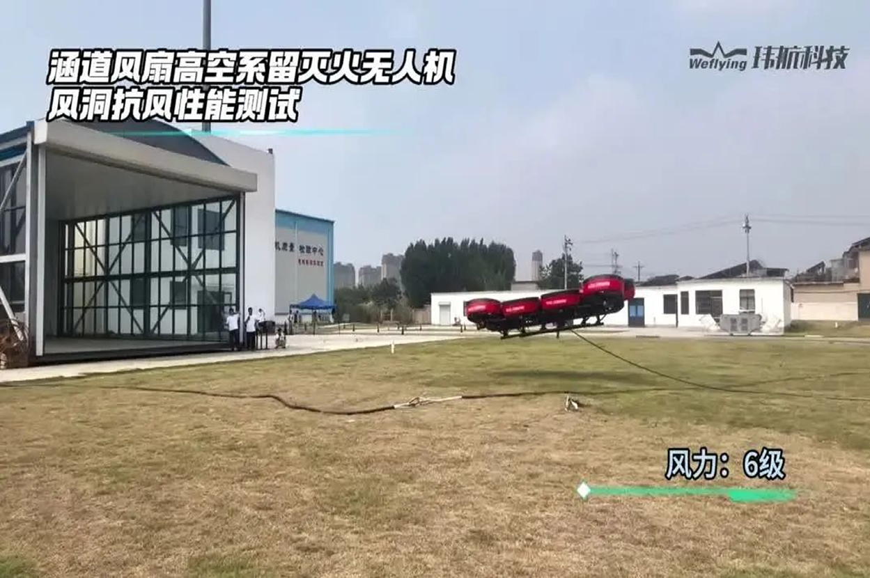 快讯|玮航科技涵道风扇高空系留灭火无人机系统完成无人机风洞抗风性能测试