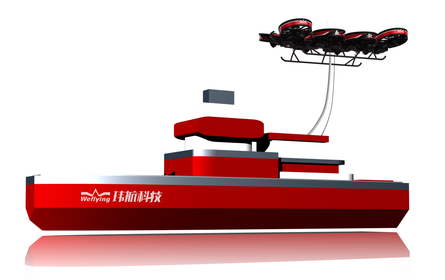 At present, accidents occurring in open seas and inland waters are mostly addressed using firefighting equipments such as helicopters. However, due to limitations such as their single-use extinguishing agent and lack of continuous operations, effective fire extinguishing usually cannot be achieved.